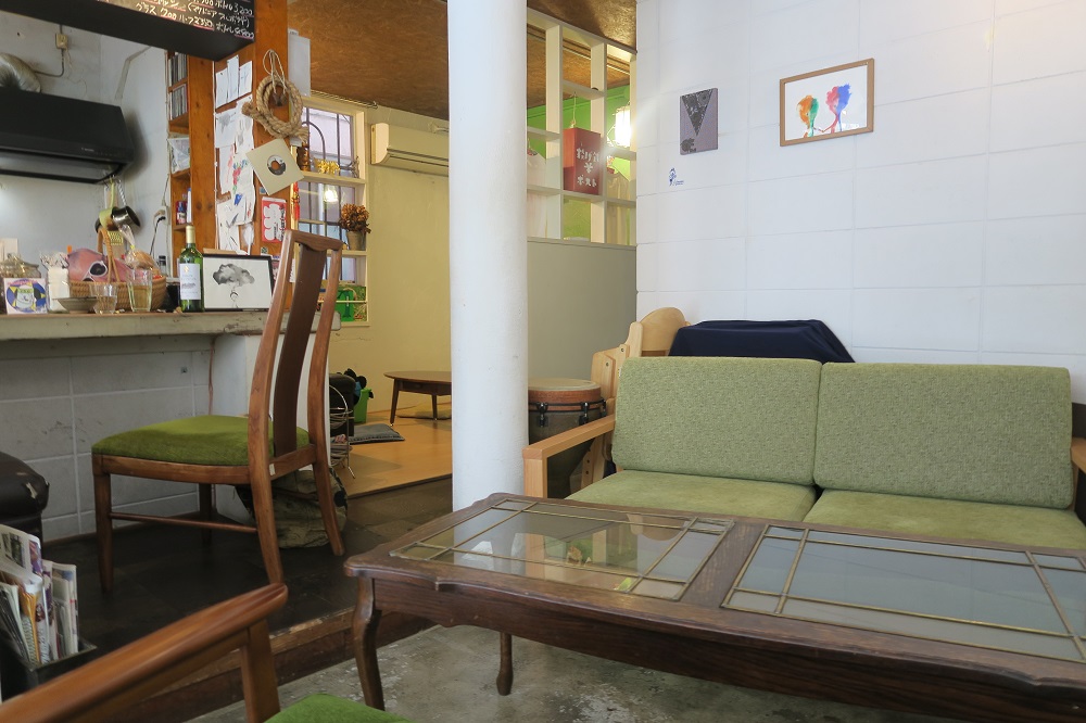 化学調味料を使わずにマスターがすべて手作りしていて、肉料理はありませんが、沖縄県産の旬の野菜や魚を使ったフードやコーヒー、デザートが楽しめるお店です。