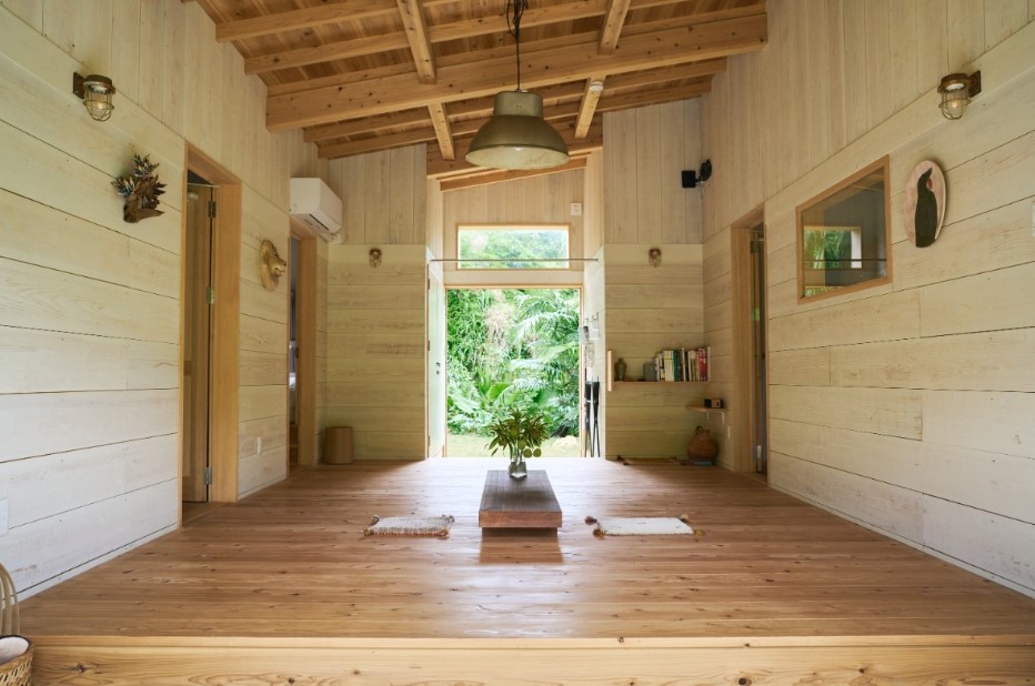 「タビビトの家」は、木をふんだんに使った平屋建てのヴィラ。