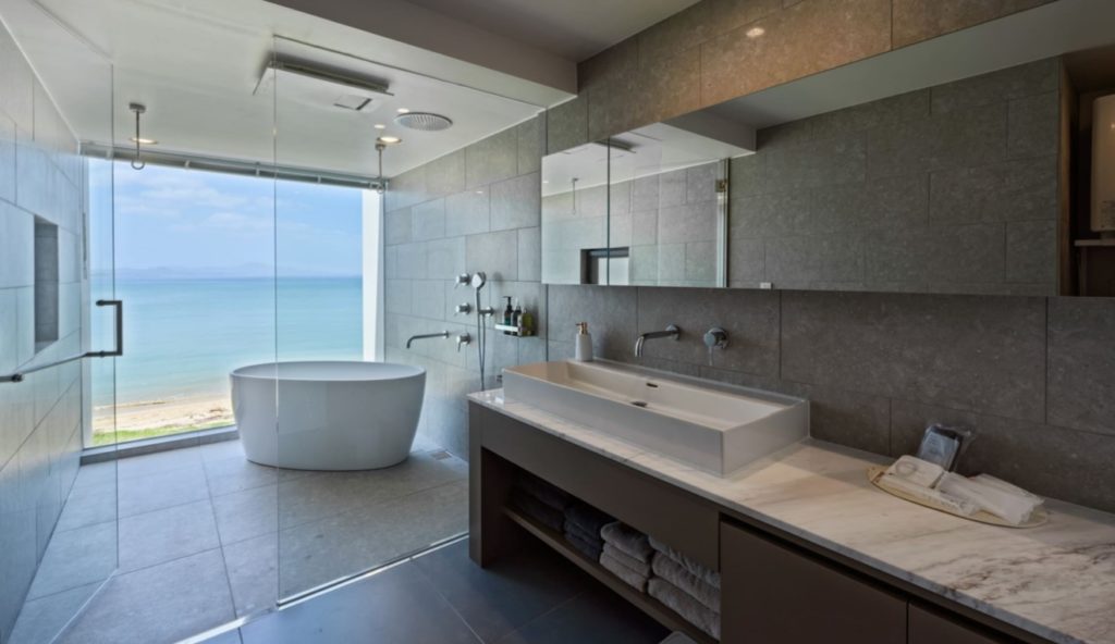 バスルームも広々としており、デザイン性も高く、日常を忘れて贅沢なバスタイムを過ごせます。アメニティーはロクシタン!