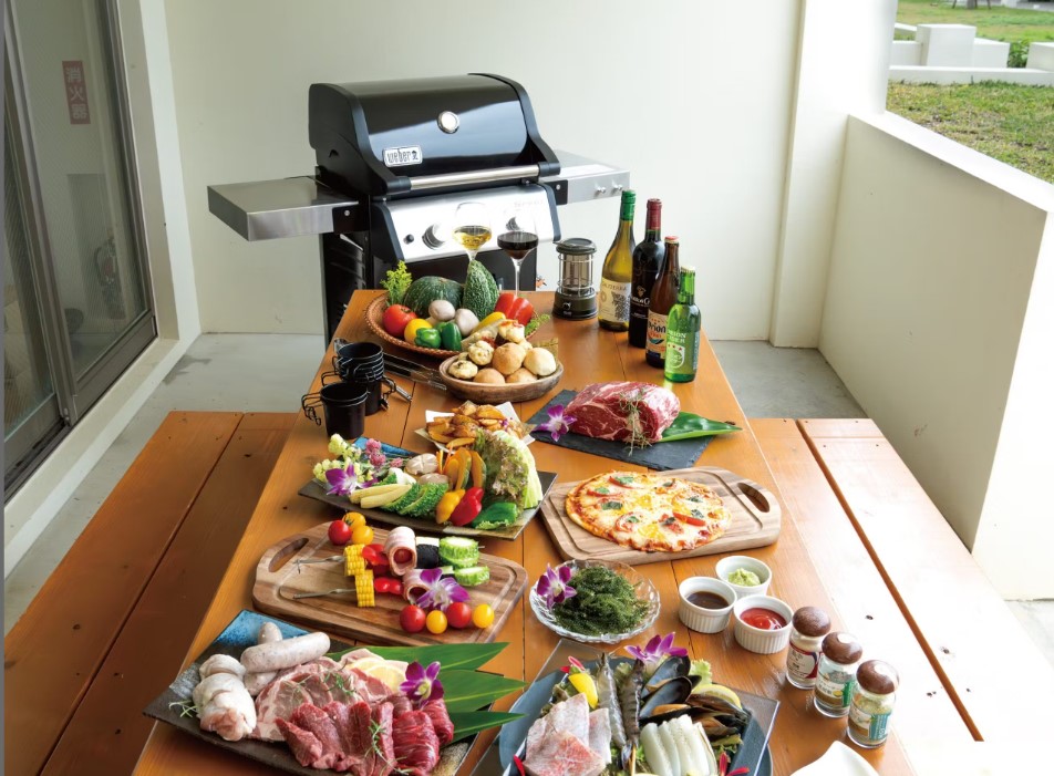 屋外スペースでバーベキューが楽しめる専用テラス付き。島の風を感じながら、美味しい時間をどうぞ。グリルはアメリカ製の本格派Weber(ウエイバー)。