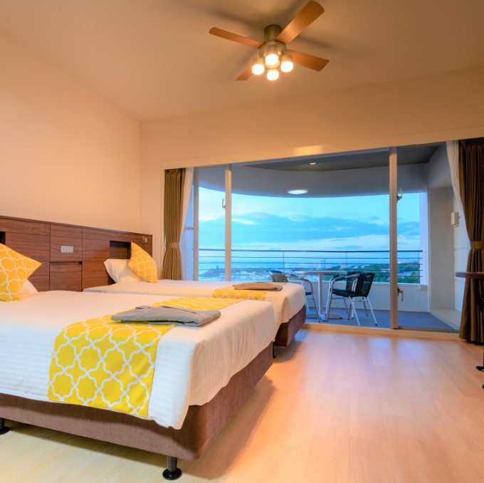 お部屋のタイプは、オーシャンビュー、パーシャルオーシャンビューの2種類。バルコニーからは東シナ海のパノラマが広がり、晴れた日には、水平線に沈む夕陽が圧巻の美しさ。時間を忘れて見とれてしまうほどです。