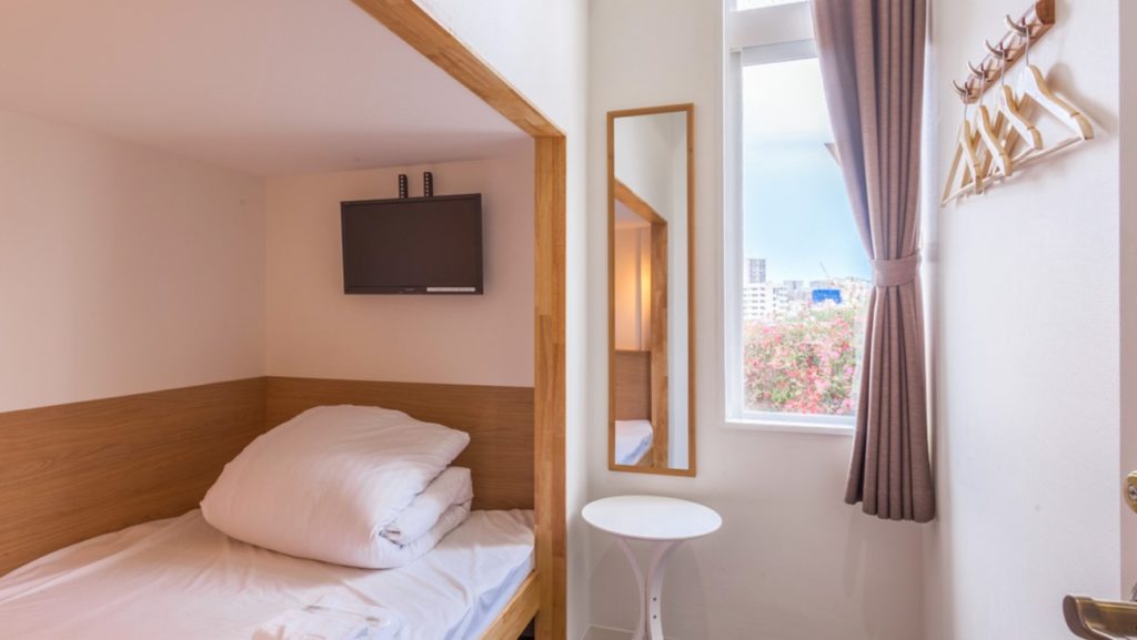 このホテルは「キャビン型」「バンクベッド」「スタンダードシングル」「スタンダードダブル」など、多様な客室タイプを取りそろえています。さらに5階には「シャワートイレ付き特別室」もあり、選びやすく楽しいラインナップです 。