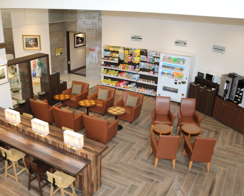 キャビンホテルと聞くと簡易宿泊のイメージがありますが、こちらはその印象をくつがえす上質な空間が魅力です。木目調の内装に落ち着いた照明が映え、空港エリアとは思えないほど静かで快適に過ごせます。