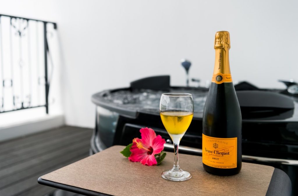 この施設の最大の魅力は、全棟に備えられたジャグジー付きテラス。