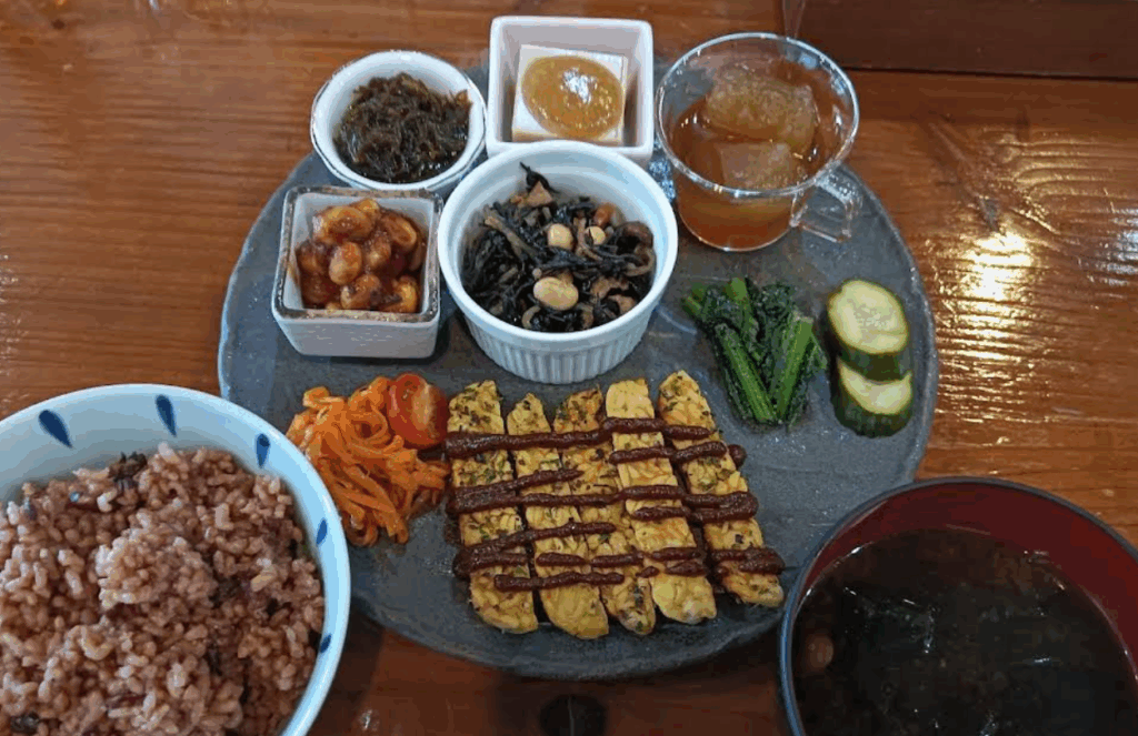 玄米のしっかりとした噛みごたえ、バランスの取れたおかずの数々、そして穏やかに締めくくるデザートとドリンク――。マクロビやヴィーガンに馴染みがない人でも、「満足感のある食事」として楽しめるランチです。