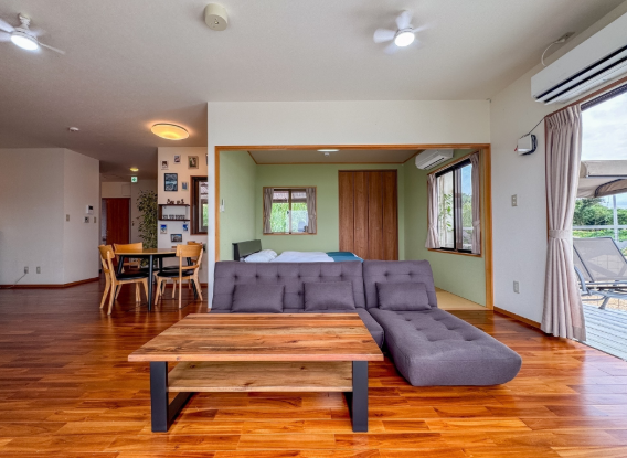 まず「シーサー棟」は、古宇利島でも最古級とされる歴史ある建物を2025年にリニューアルした特別な一棟。古民家らしい佇まいを残しながら、内装・設備は快適に整えられており、懐かしさと過ごしやすさが同居した独特の雰囲気が魅力です。