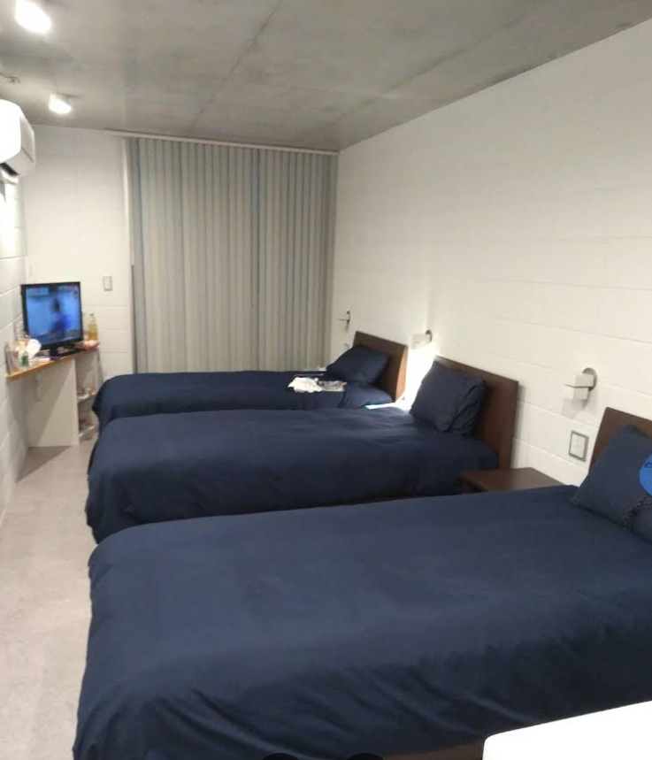 『ウミノヤド海風』は1日わずか2組のみの小さな宿。客室はツインベッドの部屋と、トリプルベッドの部屋の2タイプで、いずれもシンプルで清潔感のある内装が特徴です。