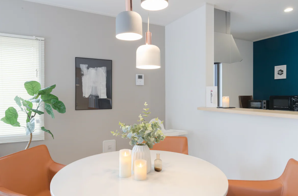 キッチンも備え付けられており、地元スーパーで食材を購入して料理を楽しむこともできます。外食続きになりがちな旅行中でも、気軽に自炊できる環境があるのは大きなポイント。和室もあるので、長期滞在や小さなお子さま連れの旅行にも向いています。