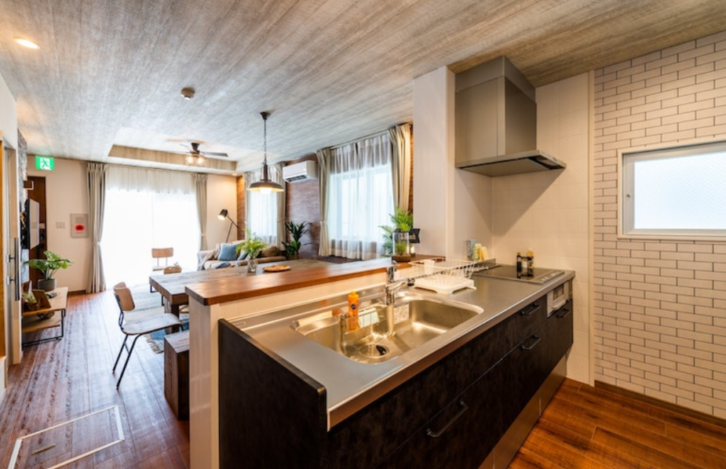 那覇空港から約30分。沖縄本島中部宜野湾市にある、おしゃれでスタイリッシュ、最大16名まで宿泊できる、キッズフレンドリーなコンドミニアムです。キッチンもあり、周辺のスーパーなどで調達した食材で料理が楽しめますが、グルメな飲食店も周辺にたくさんあります。