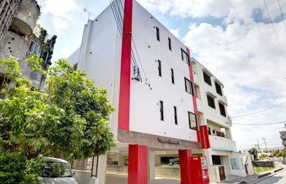 「テラスリゾート・エイト」は沖縄本島・宜野湾市の中心エリア、真志喜(ましき)に位置する滞在型リゾート施設です。那覇空港から車で約22分というアクセスの良さに加え、リムジンバス停「ムーンオーシャンホテル」から徒歩約6分という公共交通での訪問も可能。海外からのゲストやレンタカーなしの滞在にも便利な立地が魅力です。