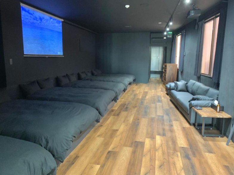 2025年にオープンした Black Penthouse Naha は、118㎡という広々としたフロアを 1日1組限定で貸切利用 できる点が最大の特徴です。最大12名(ダブルベッド6台)まで宿泊可能なこのペントハウスは、グループ旅行やファミリー旅、仲間との滞在にも最適な設計となっています。