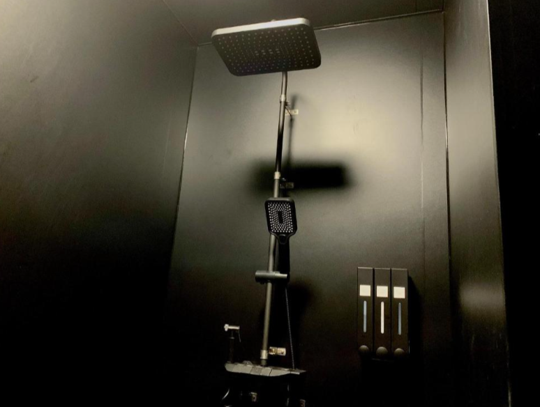 室内設備も充実しており、洗濯機・乾燥機、2つのシャワールーム(オーバーヘッドシャワー)、ハリウッドミラー付きの洗面、2つのトイレといった実用的な設備が整っています。さらに 100インチのプロジェクター が設置されており、Netflix や Amazon Prime Video などの映像コンテンツを大画面で楽しむことができます。冷蔵庫内のフリードリンクやタオル、ヘアドライヤー、基本アメニティ類も完備されており、快適な滞在をサポートします。