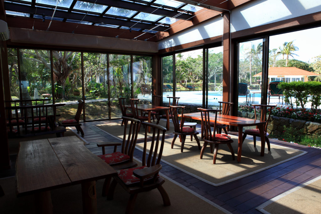那覇空港から車で約60分。沖縄本島東海岸のうるま市にあるリゾートです。コテージタイプとガーデンタイプの部屋があり、海外でしかお目にかかれない天蓋付きのベッドのある部屋もあります。