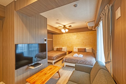 The photo shows a deluxe twin, but the 2nd floor can accommodate up to 6 people, and the 2nd to 5th floors can accommodate up to 5 people.