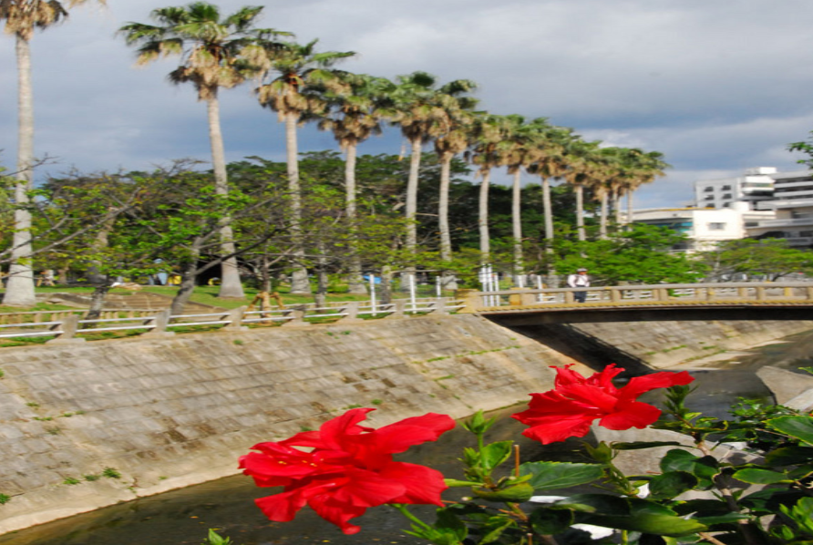 By bus, take Ryukyu Bus No. 120 or 111 to “Naha Bus Terminal” and transfer to Okinawa Bus No. 35 to “Red Cross Hospital Mae”. It is a one-minute walk to the park.