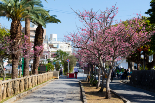 Yogi Park, located in Yorimiya, Naha City, has a river running through the park, and in February, scarlet cherry blossoms bloom along the river and a cherry blossom festival is held.