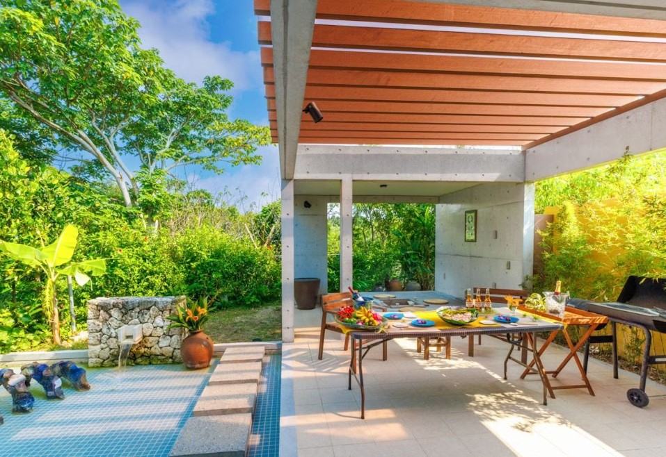 Located about two hours by car from Naha Airport, this is a private rental house with a pool and jacuzzi on a hill in Bise, Motobu Town. On a clear day, you can even see Iejima Island from the nice view! The interior is decorated with artworks, and the tableware is Yachimun and Ryukyu glass. This is a place where you can enjoy both art and your stay.