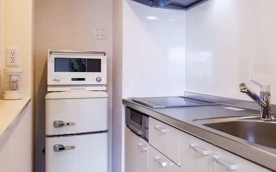 Resort Villa KAPUKA” has a fairly authentic kitchen, equipped with fashionable appliances such as Balmuda. There is also a refrigerator with a slightly retro design to avoid giving the impression of being lived in, and you can tell that a lot of effort has been put into the interior design.