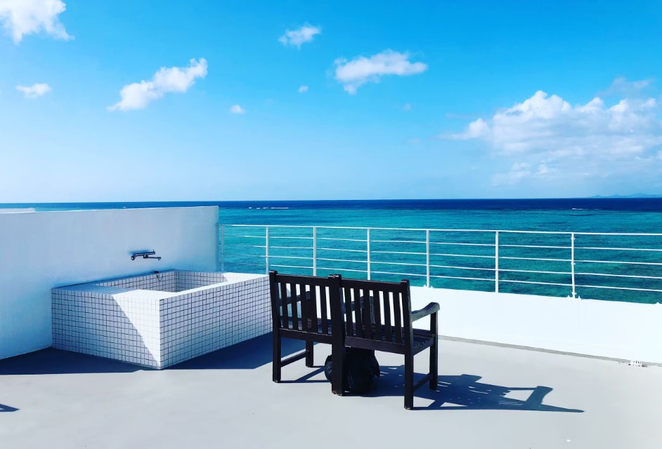 About 90 minutes by car from Naha Airport. This boutique hotel is situated in Nakijin Village, on the northern part of Okinawa Island. With just 4 rooms, each features slightly different specifications and layouts. Every room offers views of the Nakijin Blue Sea, and the rooftop terrace boasts an open-air bath! While not overly spacious, it promises a highly satisfying stay.