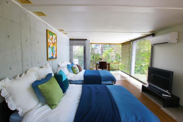 While the extensive glass walls create an exceptionally open feel, some guests might find it a bit too open. Closing the curtains ensures complete privacy.