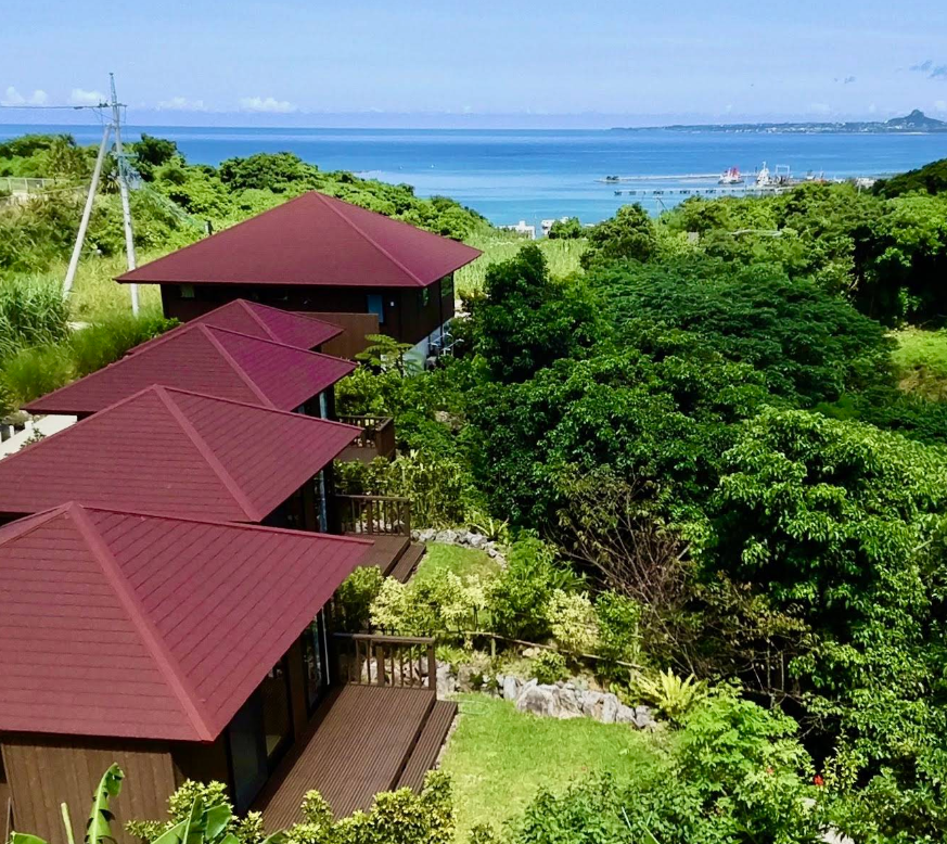 Sanin Resort stands on a hilltop in Motobu Town, northern Okinawa Island. While conveniently located near popular tourist spots like the Churaumi Aquarium, the Fukugi Tree Avenue in Bise, and Sesoko Island, this villa is nestled in a quiet environment, slightly removed from the hustle and bustle. Surrounded by lush green trees, a calm atmosphere pervades, allowing you to forget the noise of the city. Unlike coastal accommodations, this villa’s defining feature is its elevated hilltop location offering distant ocean views. While the beach itself is a short distance away, the expansive vista of the blue horizon from this open vantage point offers a uniquely refreshing perspective.