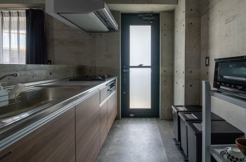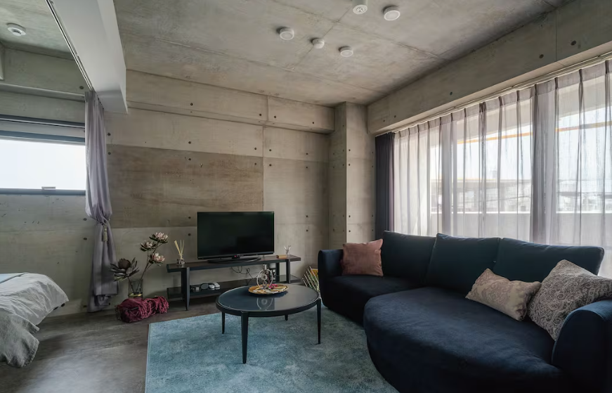 On the other hand, the 55-square-meter one-bedroom type is ideal for couples or small groups. It also features a unified exposed concrete interior, creating a simple and modern space.
