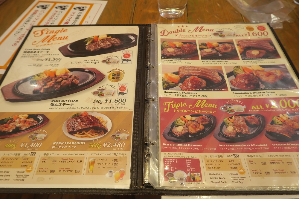 The menu at Jumbo Steak HANS is so extensive that you can get lost in it, and the menu selection to say the least.