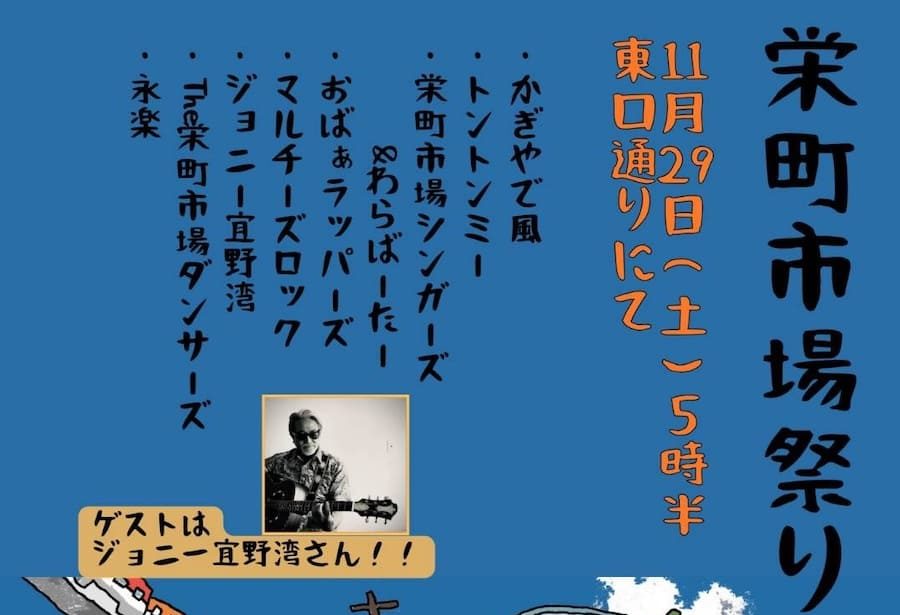 本イベントを主催する栄町市場組合は、市場内外で活動する個性豊かな「市場エンターテイナー」を集め、祭りを盛り上げる。ステージには、地元で人気のおばぁラッパーズ、栄町市場シンガーズ、栄町市場ダンサーズなど、多彩な出演者が一堂に会し、歌やダンス、パフォーマンスで来場者を楽しませる。さらに、今回はスペシャルゲストとしてジョニー宜野湾も登場。音楽とエンターテイメントを通して、市場の魅力をより一層引き立てる。