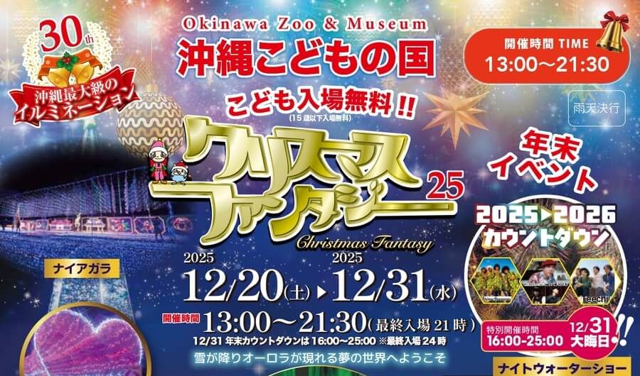 今年で記念すべき30周年を迎える、沖縄の冬の風物詩「沖縄こどもの国 クリスマスファンタジー」が、2025年12月20日(土)から31日(水)まで開催されます。
