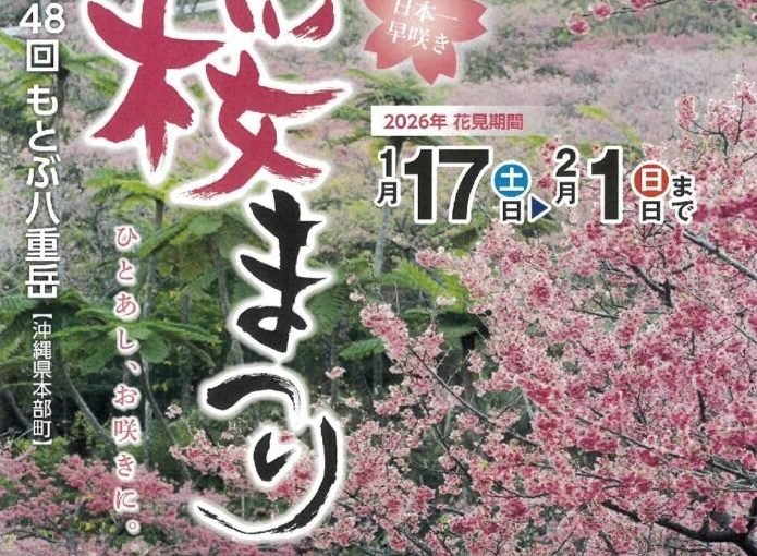 本部町にある八重岳桜の森公園にて、2026年1月17日(土)~2月1日(日)の期間、「第48回 もとぶ八重岳桜まつり」が開催される。「ひとあし、お咲きに。」をキャッチフレーズに、日本一早い桜まつりとして知られる恒例イベントだ。