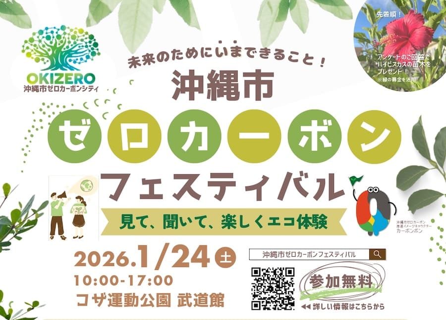 2026年1月24日(土)、沖縄市のコザ運動公園・武道館にて「沖縄市ゼロカーボンフェスティバル」が開催される。