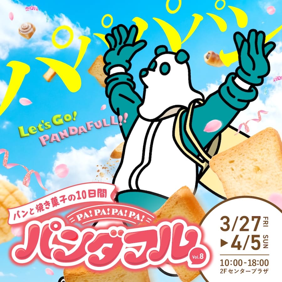 2026年3月27日(金)~4月5日(日)の10日間、浦添市の大型商業施設 サンエー浦添西海岸パルコシティ にて、パン好きのための人気イベント「Pa!Pa!Pa!Pa!パンダフル vol.8」が開催される。地元の人気ベーカリーをはじめ、県外や離島の話題店までが集結する、パンと焼き菓子の祭典だ。