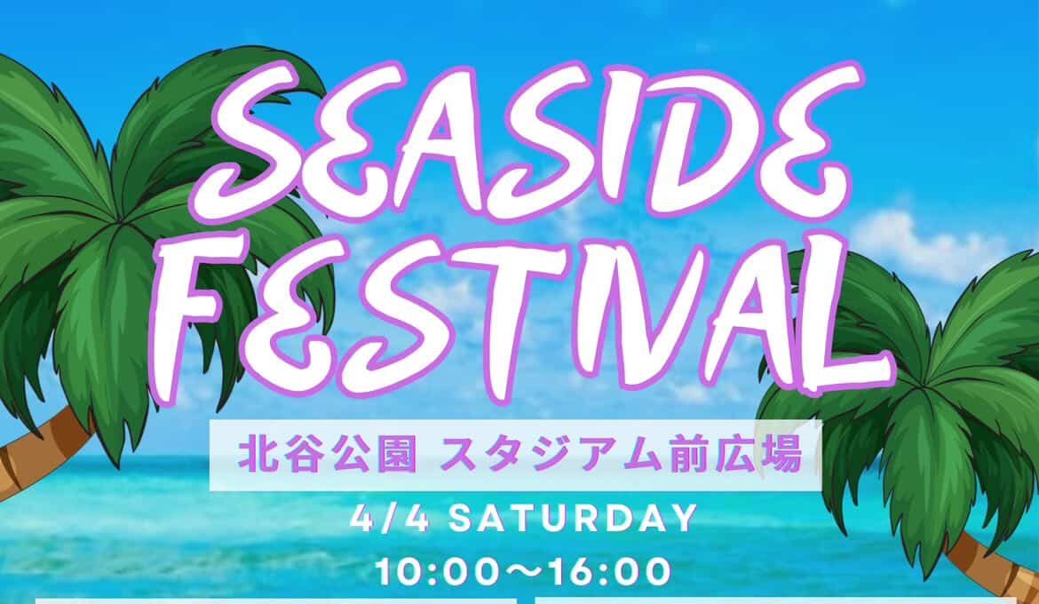 2026年4月4日(土)、北谷町の 北谷公園 スタジアム前広場にて、家族で楽しめるイベント「SEASIDE FESTIVAL」が開催される。海の近くの開放的なロケーションで、グルメや体験、遊びが一度に楽しめる春のおでかけイベントだ。